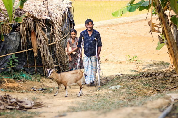 Mit der neu gewonnenen Mobilität eröffnete sich auch eine neue Perspektive für seinen Lebensunterhalt. Da Jasim nicht mehr Bambus sammeln kann, half ihm der ASB, alternative Einkommensmöglichkeiten zu entwickeln. Heute baut er Gemüse für seine Familie an, und er erhielt eine Ziege, mit der er sich schrittweise eine kleine Existenz aufbaut. So kann er wieder Verantwortung für sich und seine Nichte übernehmen, die bei ihm lebt.