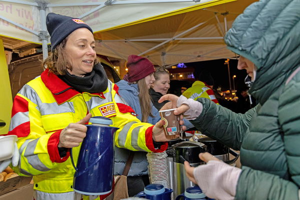 „Viele Obdachlose scheuen den Arztbesuch – aus Scham oder schlicht, weil sie keine Krankenversicherung haben. So manches Pflaster ist gleichzeitig eine Wohltat für die Seele“, erklärt Bianca Knop, Assistentin der ASB-Bundesgeschäftsführung und seit Jahren ehrenamtlich für die ASB-Kältehilfe im Einsatz. Sie freute sich über die große Resonanz an diesem nasskalten Dezemberabend in der Domstadt: „Das Leuchten in den Augen, die Dankbarkeit für etwas Zuwendung, eine warme Suppe und die Möglichkeit des Austauschs – das spricht für sich.“